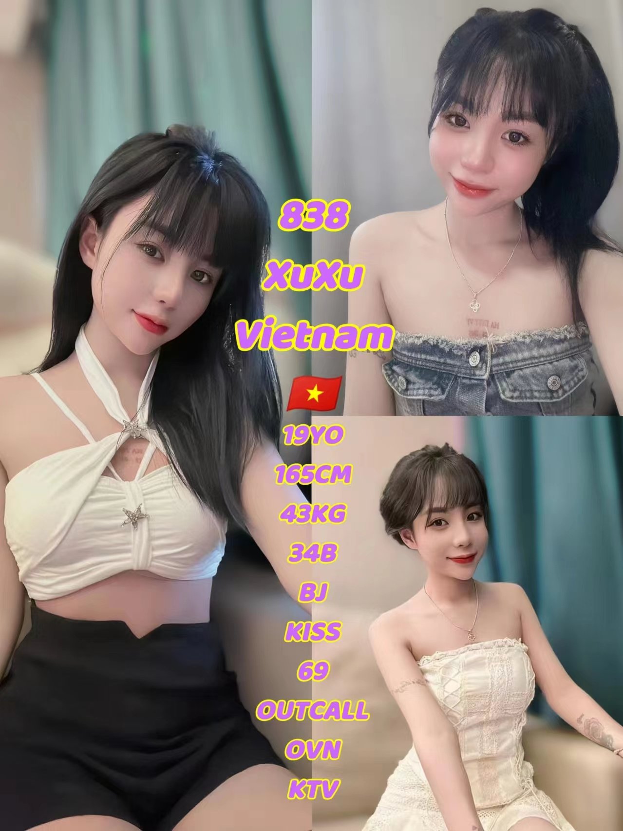 | Services | Massage(10mins), DATY, FJ, Overnight, French Kiss, 69 |